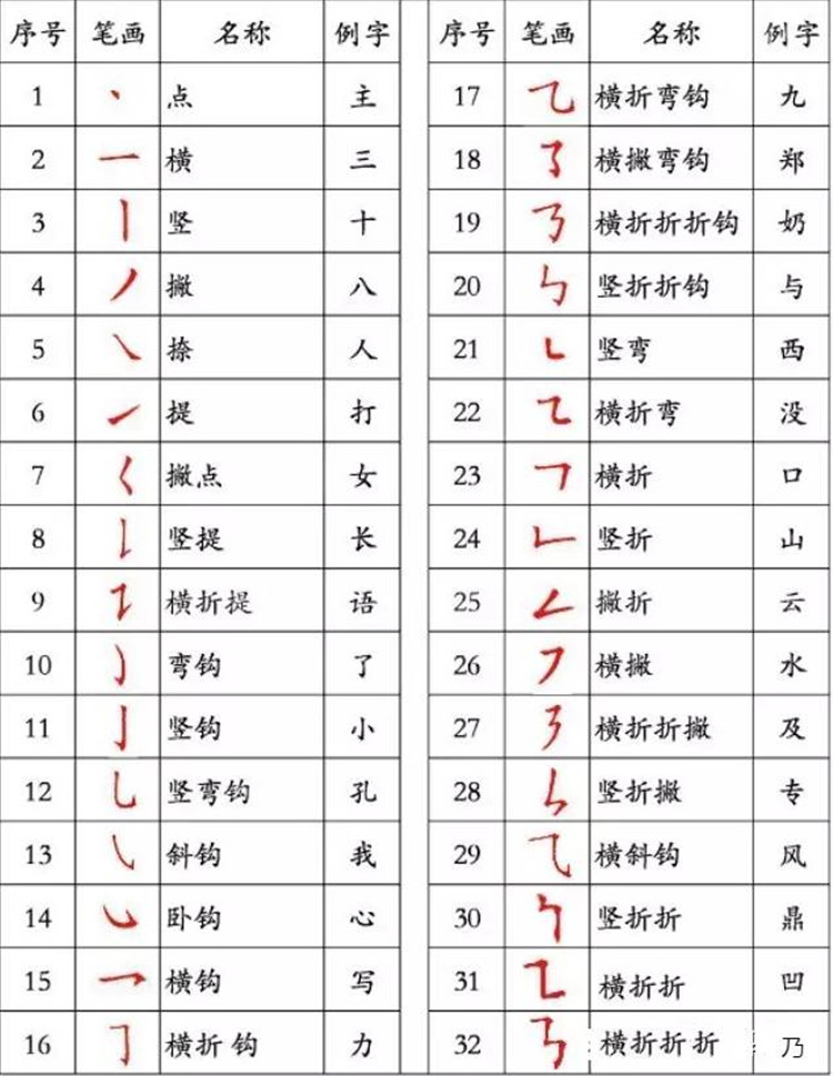 ● 汉字笔画顺序表